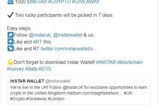 ↘️Like and RT https://twitter.com/instarwallet/status/1162039649558323200?s=09